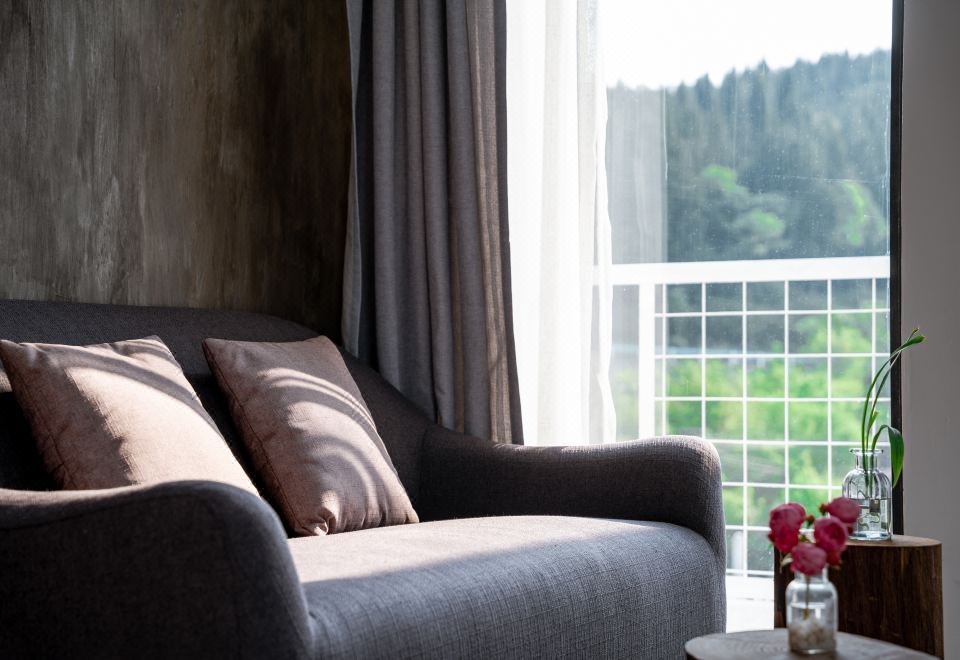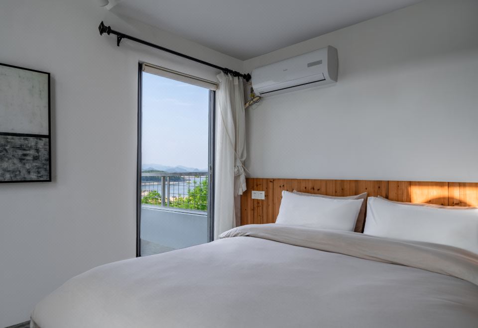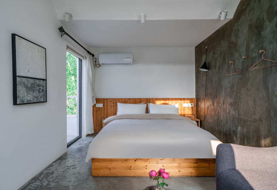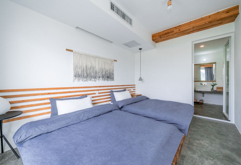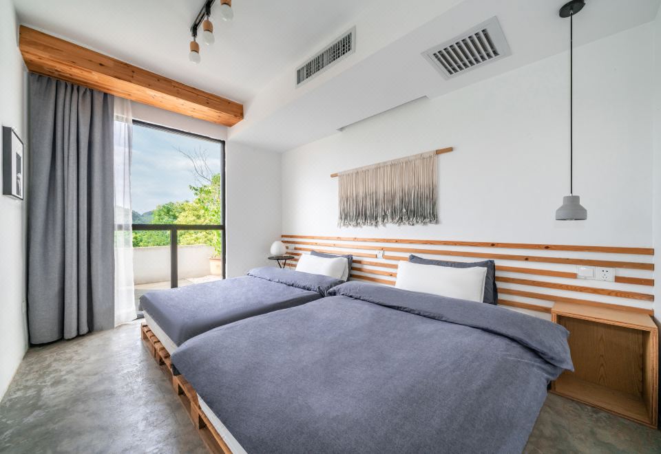 远岫·湖景阳台双床房丨远山故居丨原木防潮榻榻米+木质置衣架+侘寂风长沙发+氛围吊灯+乾湿分离