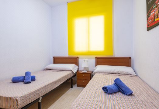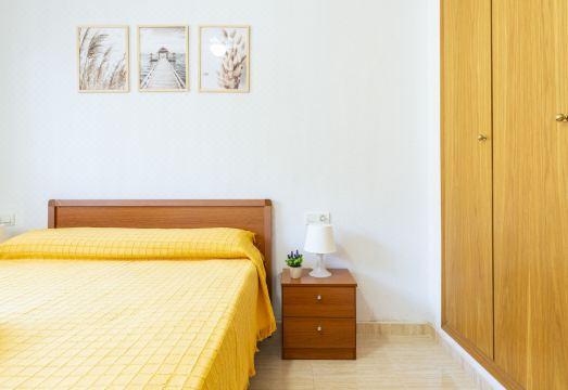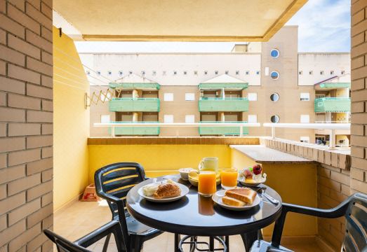 Marina d'Or: Large residence "Costa Caribe III". In a sunny position, 300 m from the sea, 300 m from the beach. For shared use: garden, swimming pool round (20 x 10 m, depth 70 - 230 cm, seasonal availability: 01.Jul. - 15.Sep.). Children's pool. In the house: lift. Supermarket 700 m, restaurant, bar, café 800 m, bus stop 1.1 km, railway station 3.2 km. "Costa Caribe III", 3-room apartment 63 m2 on 6th floor. Bright, practical and comfortable furnishings: living/dining room with dining table, digital TV, flat screen and air conditioning. Exit to the terrace. 1 room with 1 french bed (135 cm, length 190 cm). 1 room with 2 beds (90 cm, length 190 cm). Kitchen (oven, dishwasher, 4 ceramic glass hob hotplates, toaster, kettle, microwave). Bath/bidet/WC. Boiler (50 litres). Heating not available in all rooms. Large terrace 47 m2. (2). View of the sea and the mountains. Facilities: washing machine, iron, hair dryer. Parking space n 140 (roofed). Suitable for families. Maximum 1 pet/ dog allowed. VT-45185-CS // Reg. Nr.: ESFCTU00001202600052567600000000000000000VT-45185-CS5