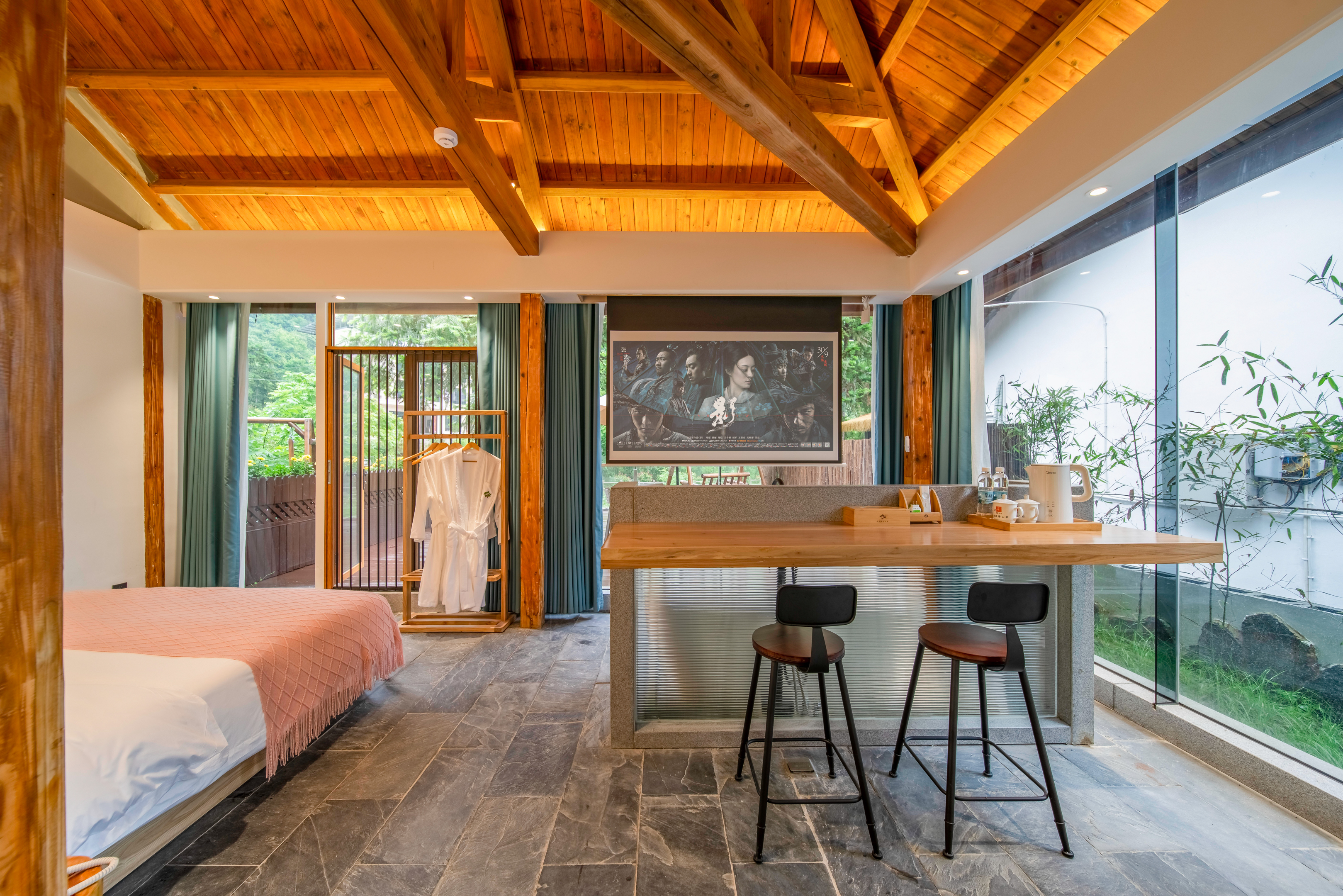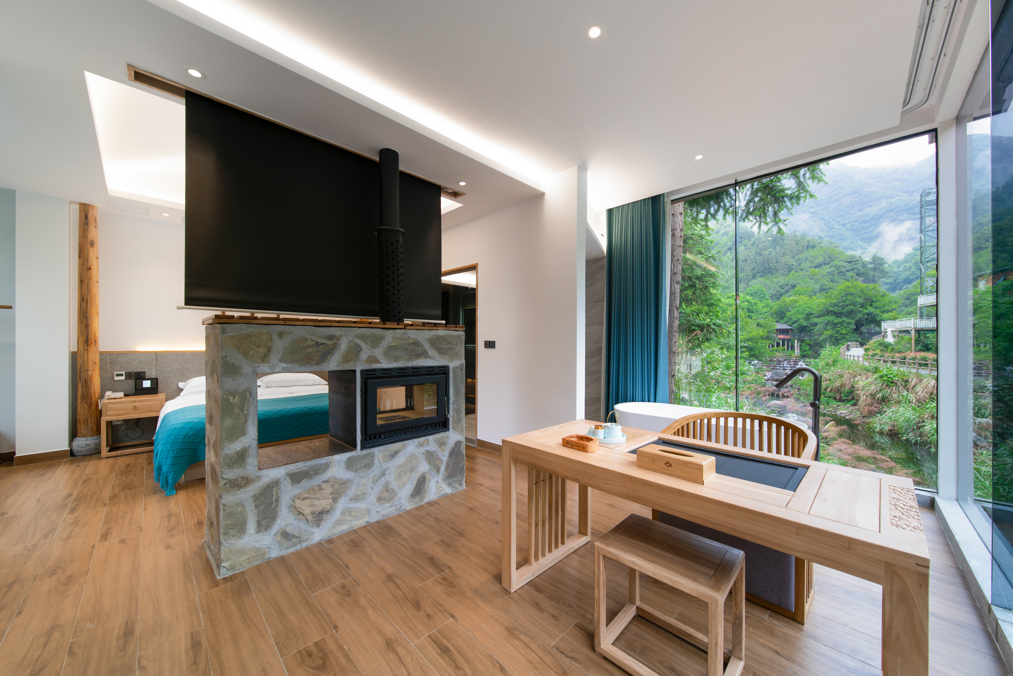 溪野壁炉大床套房【360°山景+独立阳台】