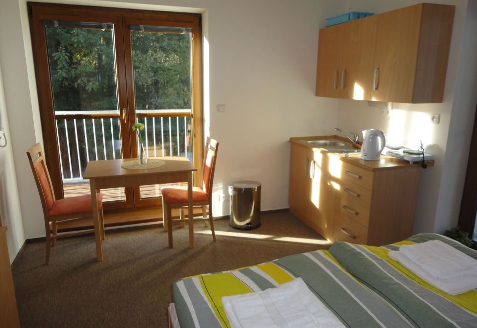 多米尼克旅馆位于铁矿镇,距离格罗瑟阿伯尔滑雪胜地和舒马瓦山不到 15 分钟车程。 此膳宿公寓距离什皮恰克缆车 2.2 英里(3.6 公里),距离金色之路 2.7 英里(4.3 公里)。您可到露台和花园欣赏美景,还可利用免费 WiFi等服务和设施。此膳宿公寓的其他设施包括滑雪用具寄存处、野餐区和烧烤炉。前台只在规定时段有服务人员值班。酒店提供免费自助停车。有 27 间客房提供备有冰箱和炉灶的简易厨房;您定能在旅途中找到家的舒适。带有有线频道的平板电视可满足您的娱乐需求;同时提供免费无线网络,方便您与朋友保持联系。便利设施包括书桌和微波炉;而且按要求提供提供客房服务。