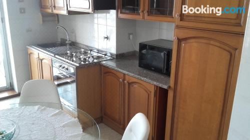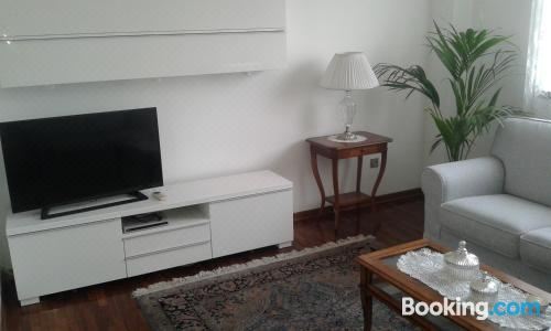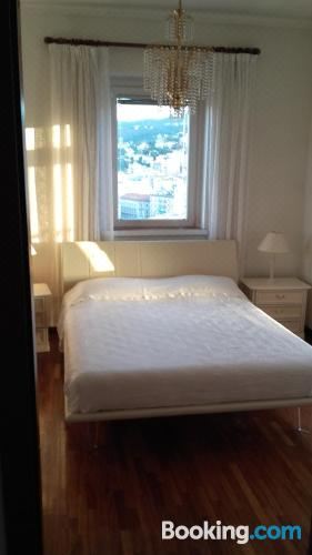 这家空调公寓配有2间卧室、起居室、带冰箱和咖啡机的设施齐全的厨房以及1间带坐浴盆和淋浴设施的浴室。这家公寓还配备休息区、洗衣机以及1间带吹风机的浴室。