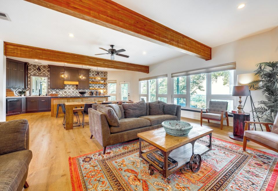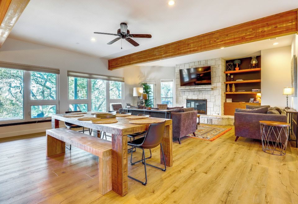 Disclaimer: We are a tourism service provider that provides room booking services for Modern Fischer House w/ Deck, Fire Pit & Hot Tub! We are not the official website of the hotel, please be aware.