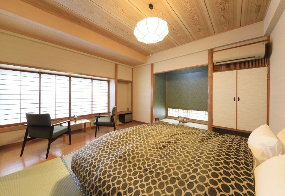 帶特大床和工作空間的日式房間