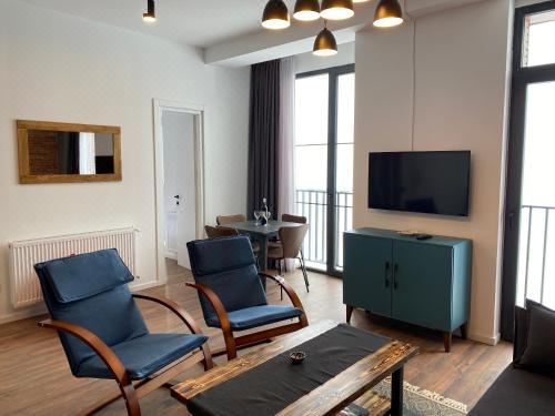 这家公寓提供阳台,享有山景,拥有1间卧室、起居室、平板电视、带冰箱和微波炉的设施齐全的厨房以及1间带淋浴设施的浴室。这家公寓还配备休息区、洗衣机以及1间带免费洗浴用品的浴室。