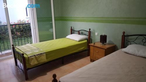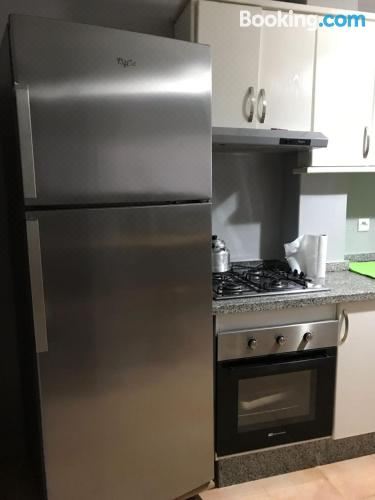 这家空调公寓配有3间卧室、起居室、带冰箱和咖啡机的设施齐全的厨房以及2间带淋浴设施和浴缸的浴室。这家公寓也为客人提供休息区和2间浴室。