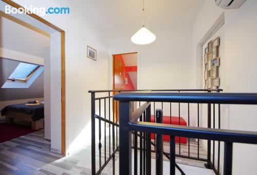 这家空调公寓配有3间卧室、起居室、带冰箱和咖啡机的设施齐全的厨房以及1间带淋浴设施和吹风机的浴室。这家公寓也配有休息区和1间浴室。