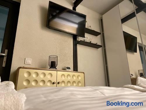 这家度假屋配有露台、2间卧室、1间浴室、设施齐全的厨房、平板电视和桑拿浴室。这家度假屋也为客人提供1间浴室。