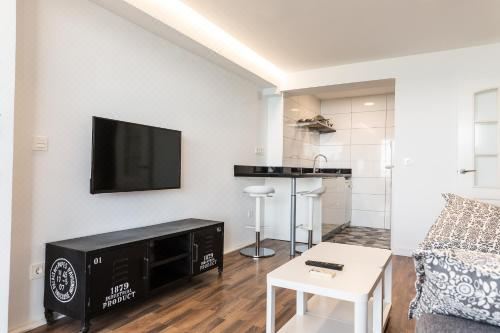 这家空调公寓配有1间卧室、起居室、带冰箱和咖啡机的设施齐全的厨房以及1间带淋浴设施和吹风机的浴室。这家公寓也配备休息区和1间浴室。