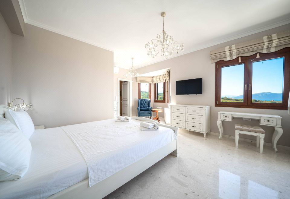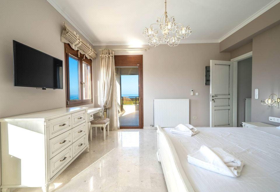 Would you want to have the beach right at your feet (1100 meters Away!)? Then take your sunglasses, a camera, a swimming suit and stay with us at the Luxury Villa Karyo. Our place is the perfect retreat for guests (up to 10) who envision dream holidays in an unrivalled position, enhanced by luxurious comforts cleverly blended in modern layout with Private swimming pool. Top quality for people who appreciate luxury and comfort combined with amazing sea view