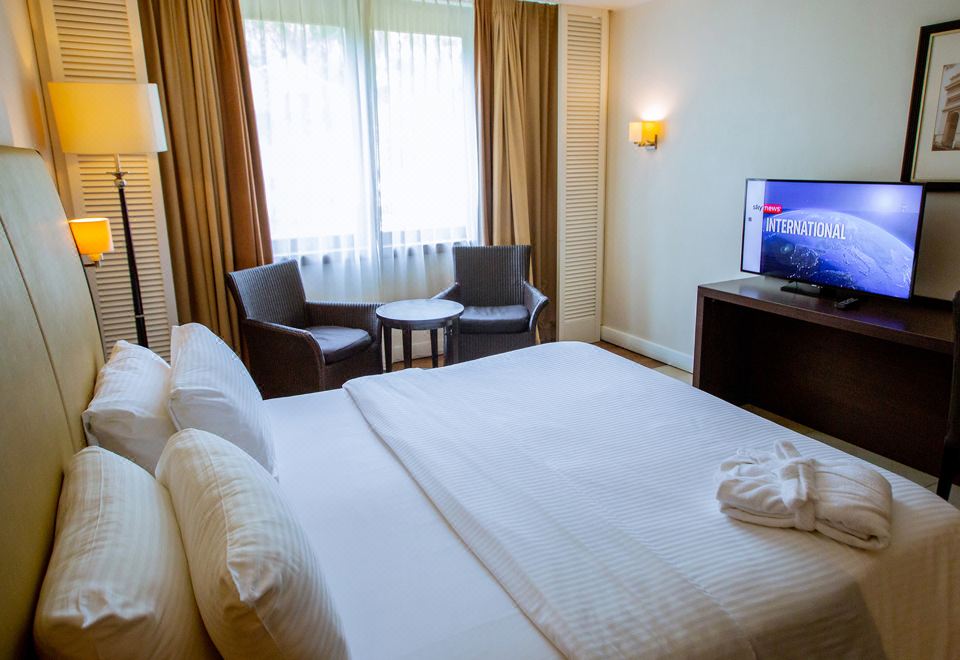 Lancaster Accra Hotel提供一流的服务和设施,让客人尽享舒适。住宿期间可免费使用互联网,确保即时通信。 使用住宿提供的机场便捷接送服务,轻松安排来回机场的交通。使用住宿提供的交通服务,探索阿克拉更方便。 如果您驾车前来,您可享受住宿提供的免费停车。 在您入住这家优质的住宿期间,尽心尽责的前台工作人员可以为您提供礼宾服务等一系列便利设施。 住宿提供票务服务,帮您轻松获得热门门票或预订抢手餐厅。 住宿提供洗衣服务,对于长住客人或在您有需要时,可确保您喜爱的旅行衣服乾净可穿。 在悠闲的白天和晚上,客房送餐服务等房内设施可让您充分享受住宿时光。 仅允许在住宿指定的吸烟区内吸烟。为了确保您获得最大程度的放松,客房采用了温馨的设计,并配备了所有基本必需品,为您营造愉快的入住体验。 为了提升住宿体验,部分客房提供空调或寝具用品,以提升您的住宿体验。 在Lancaster Accra Hotel享用美味的免费早餐,以愉快的心情开始新的一天。 怎能不爱咖啡!住宿内有咖啡厅,确保您每天早晨或在需要时都能品嚐到一杯正宗的现煮咖啡。吃饱才能玩儿好!住宿内设餐厅,提供美味且方便的餐点选择。Lancaster Accra Hotel致力于满足您的特殊需求。住宿提供多种膳食选择,包括为有特殊饮食偏好的客人提供替代食物。与您的旅伴一起,在住宿内提供的娱乐区域度过一个有趣的夜晚。 在Lancaster Accra Hotel,客人可尽情享受令人愉悦的娱乐设施。 前往住宿内的水疗设施,在静谧的氛围中结束您的一天。在Lancaster Accra Hotel,各种便利设施保证您在住宿期间获得充实的体验。您可以尽情跳入泳池享受游泳乐趣,拥有难忘假期。您可以在住宿的池畔酒吧享受户外清凉饮品,喝一杯您喜爱的鸡尾酒。 喜欢在度假时保持健身习惯的客人可以使用住宿的健身中心。