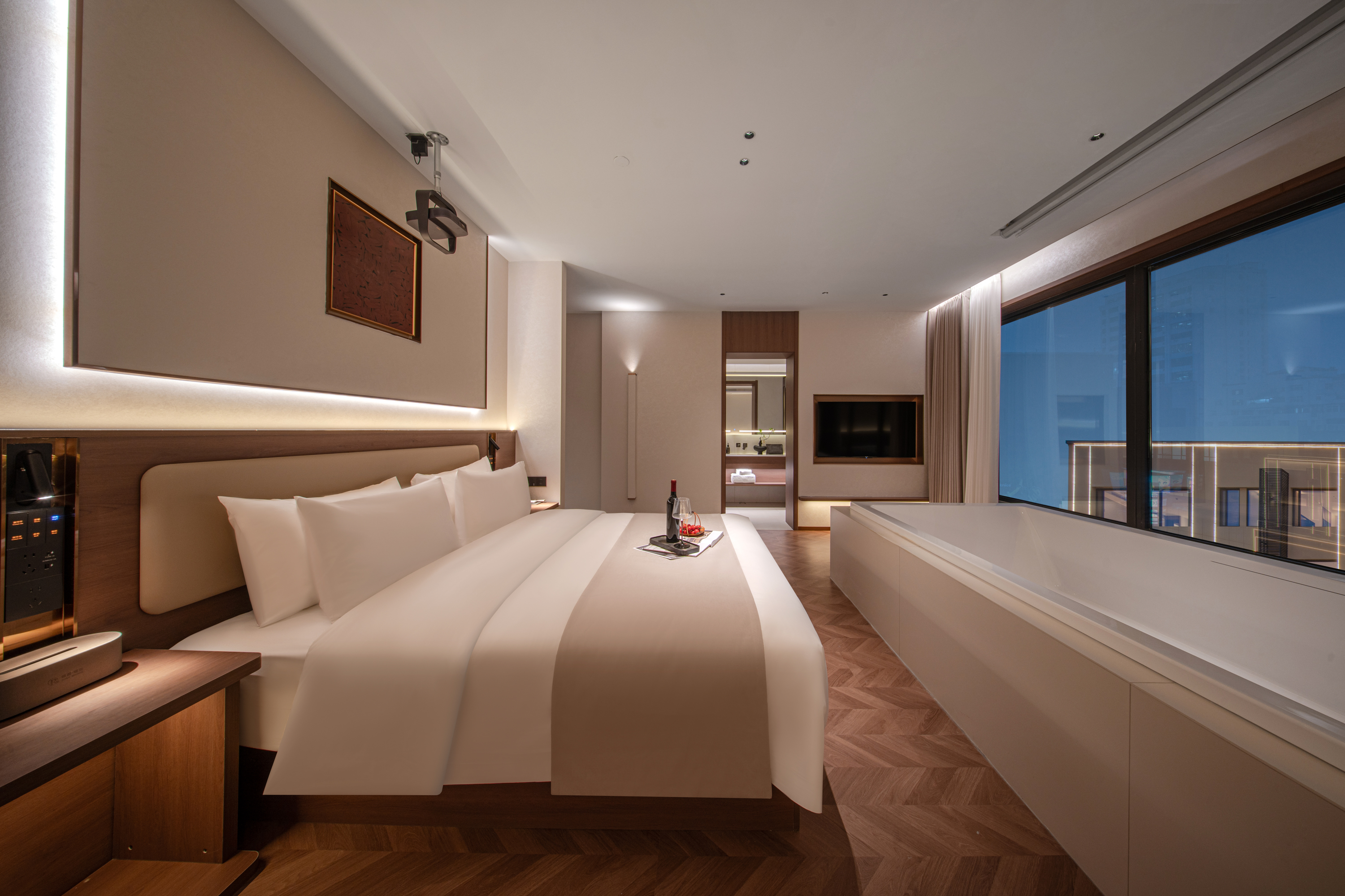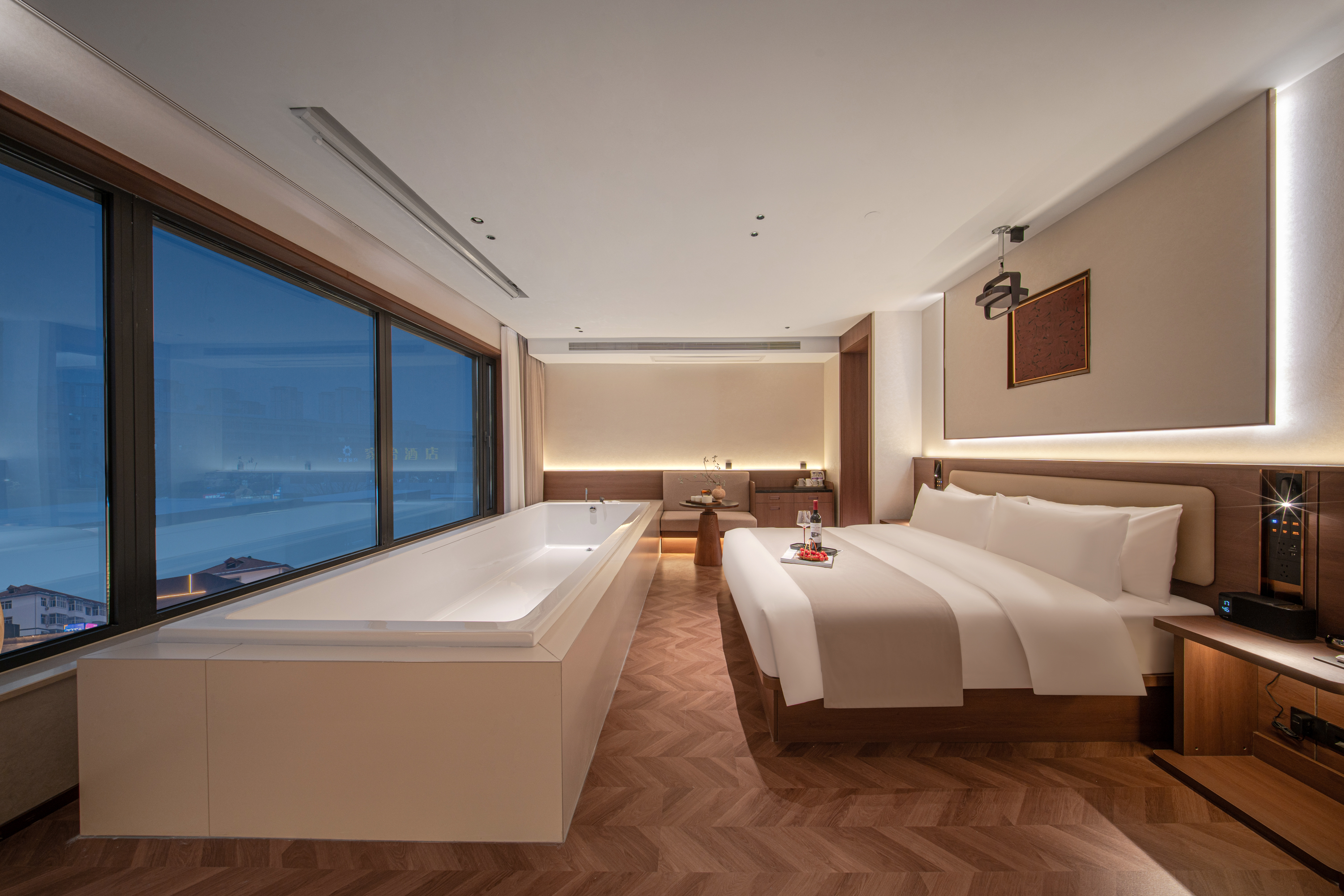 观景投影浴缸套房(百寸巨幕+3.8米浴缸+茶室)