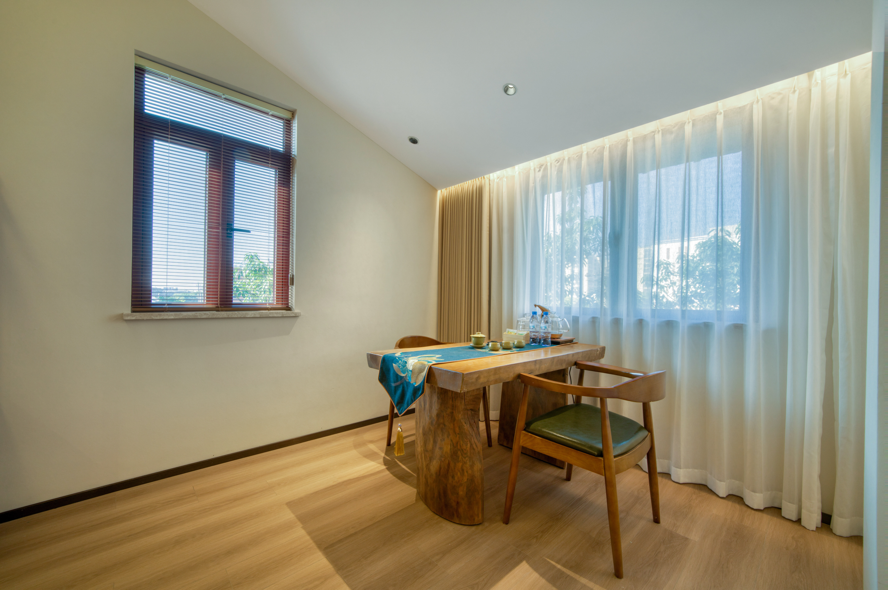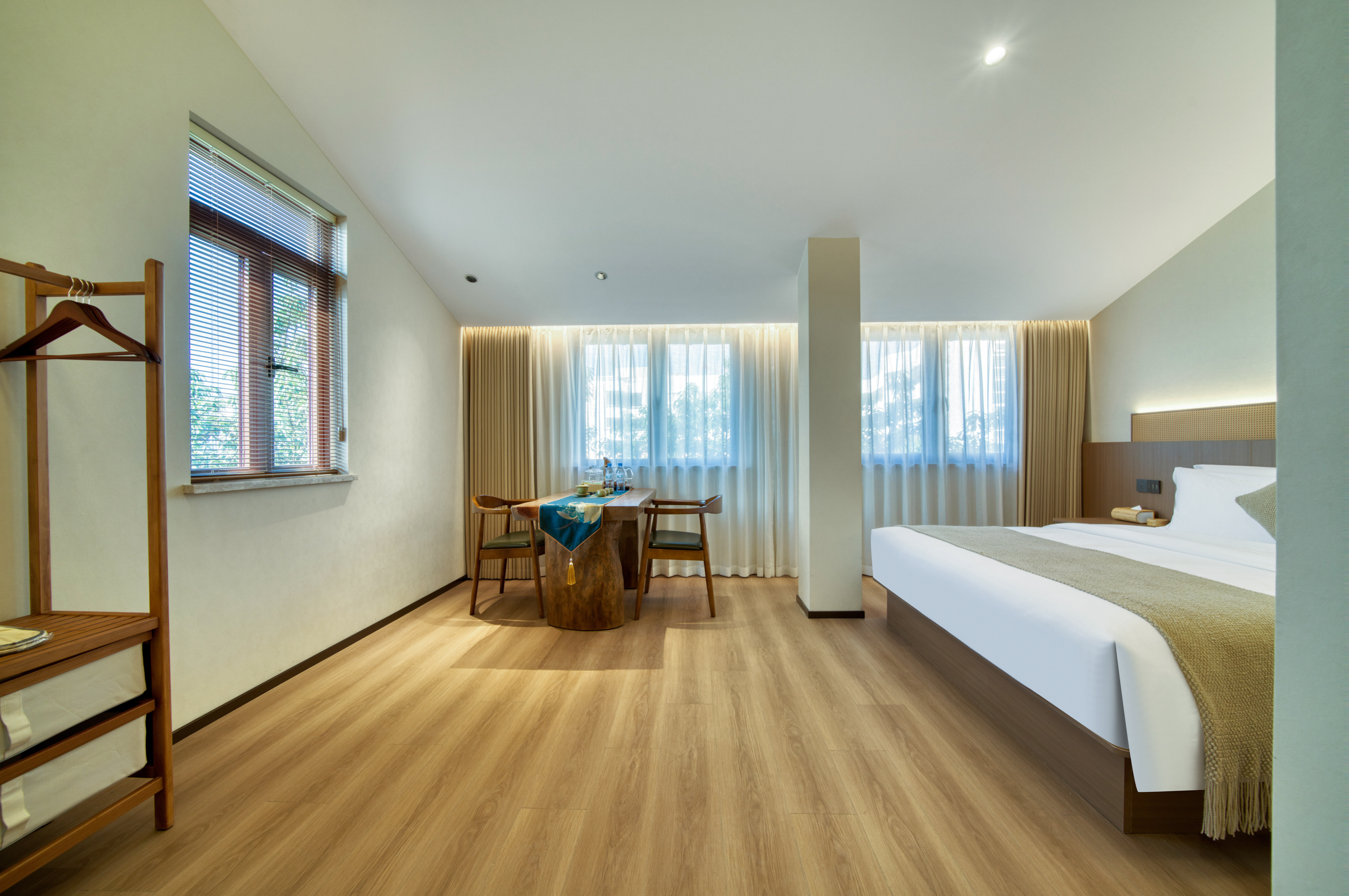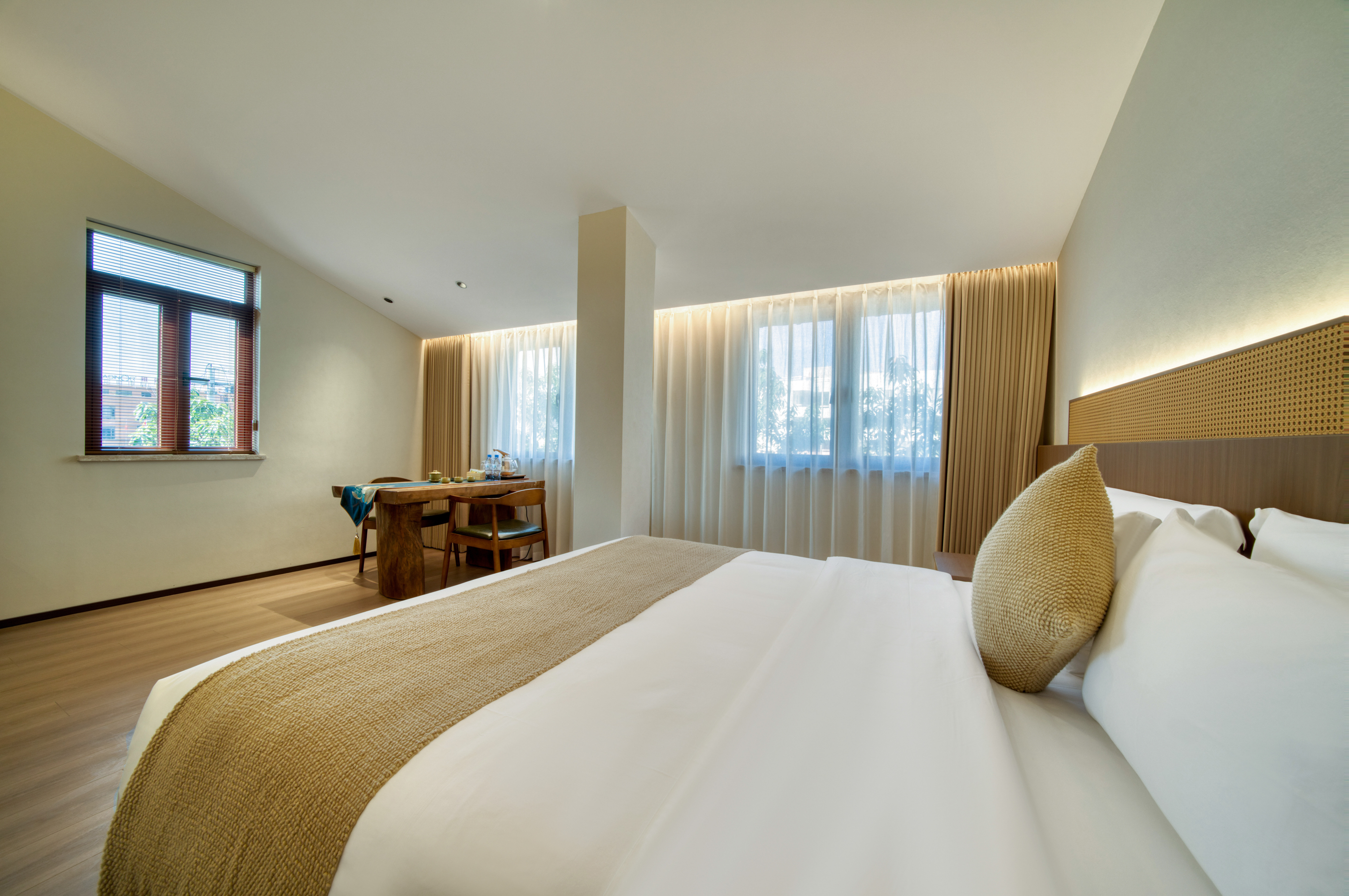 湖畔·雅居大床房|祥福茶桌|瓯窑茶具|喜临门床垫