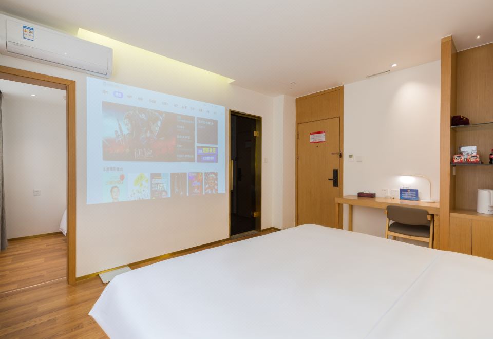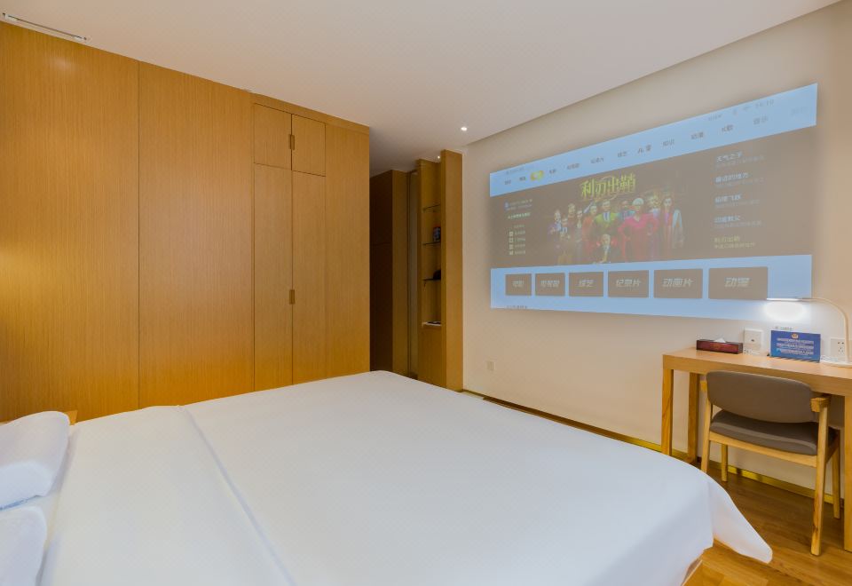 零壓影視大床房【120寸巨幕影院+堅果投影+VIP片源+夢百合記憶棉床墊+記憶枕+95%白鵝絨被+裸睡級床品+加濕器】