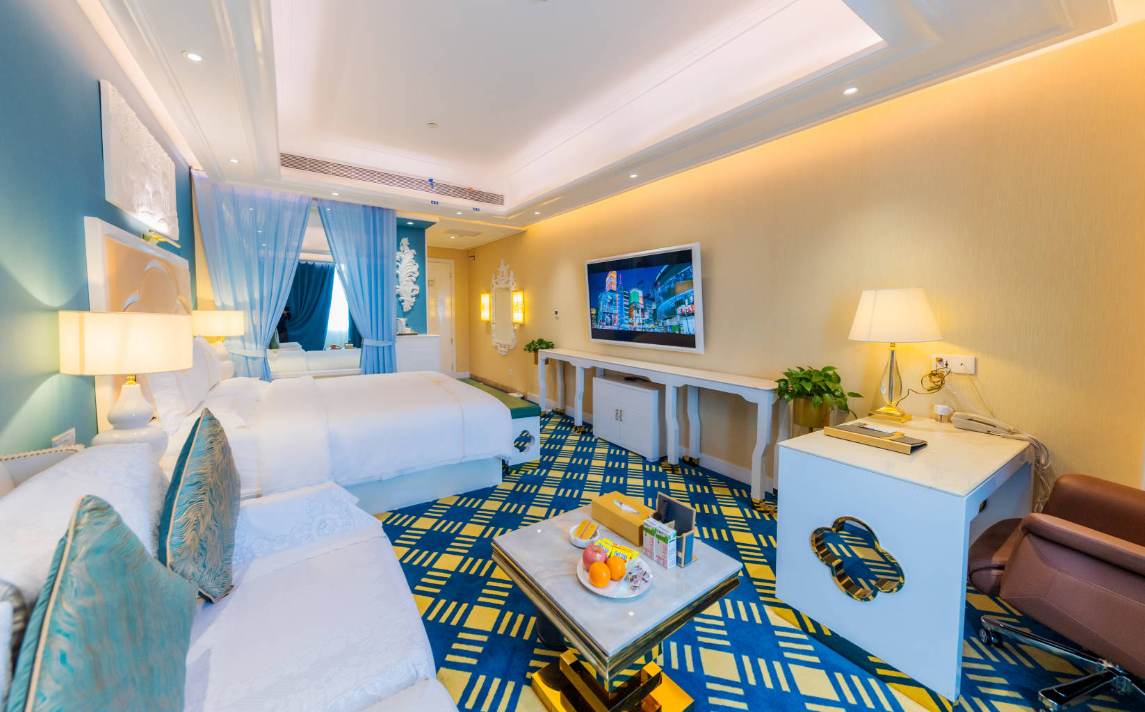 豪华双床房(温泉汤池+迷你小冰箱+智能马桶)